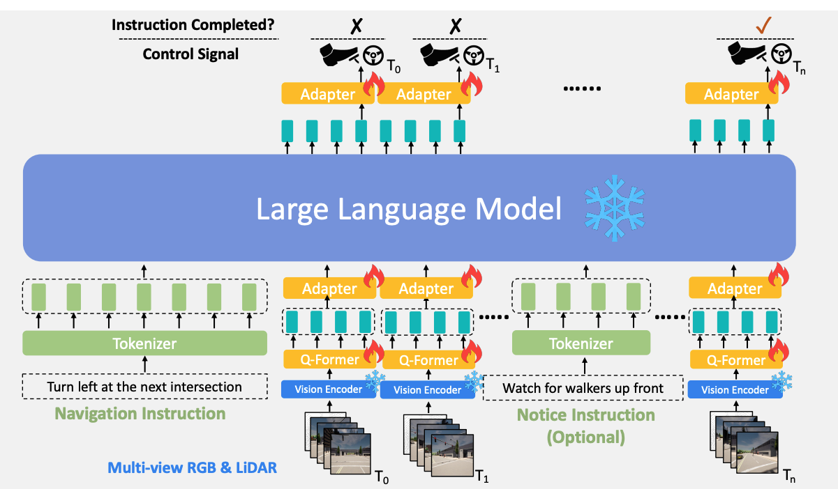 - 멀티모달 센서 데이터와 자연어 명령을 활용하여 실시간 주행 가능 - 64K 데이터 클립을 포함한 주행 데이터셋 구축