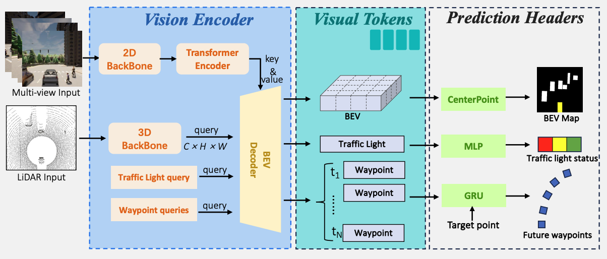 - sensor encoding 모듈: 이미지 및 LiDAR 입력을 각각 인코딩한다.