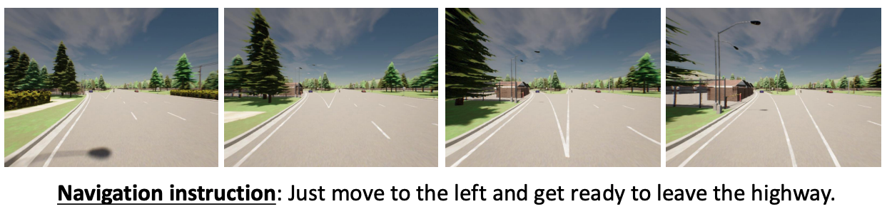 - Navigation Instructions: 차선 변경, 회전 등 자연어 명령 기반 주행.