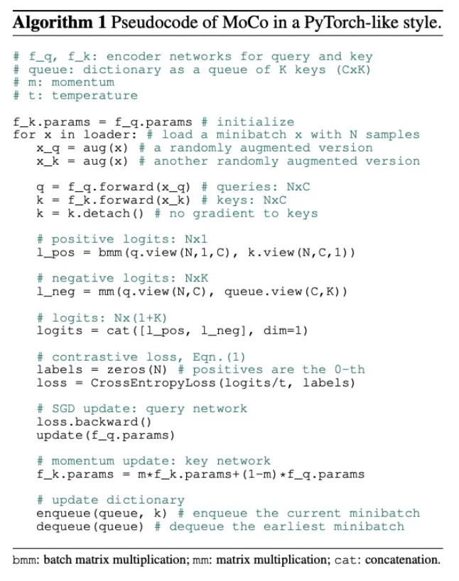 - 현재 mini-batch의 인코딩된 표현들이 큐에 추가(enqueue)되고, 가장 오래된 샘플들은 큐에서 제거(dequeue)