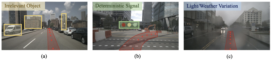 - 도로 주변의 정적인 물체는 시각적 입력이지만 주행 정책(운전)에 직접적인 영향을 미치지 않음