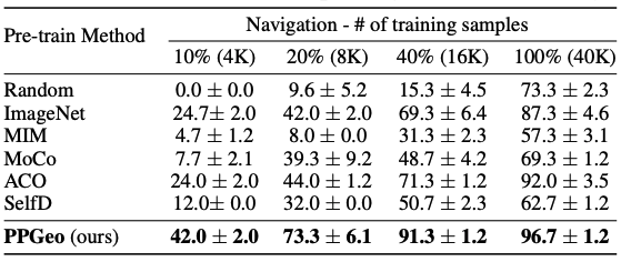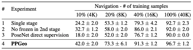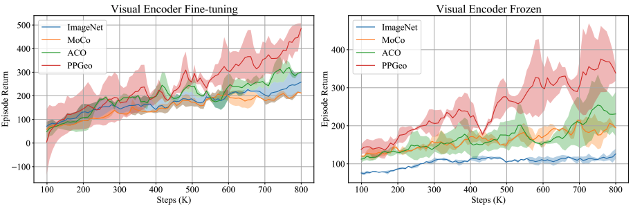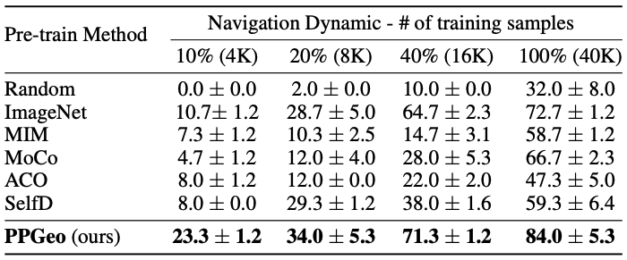 - 사전 학습된 인코더를 Freeze(동결) 한 경우에도 PPGeo가 우수한 성능을 유지